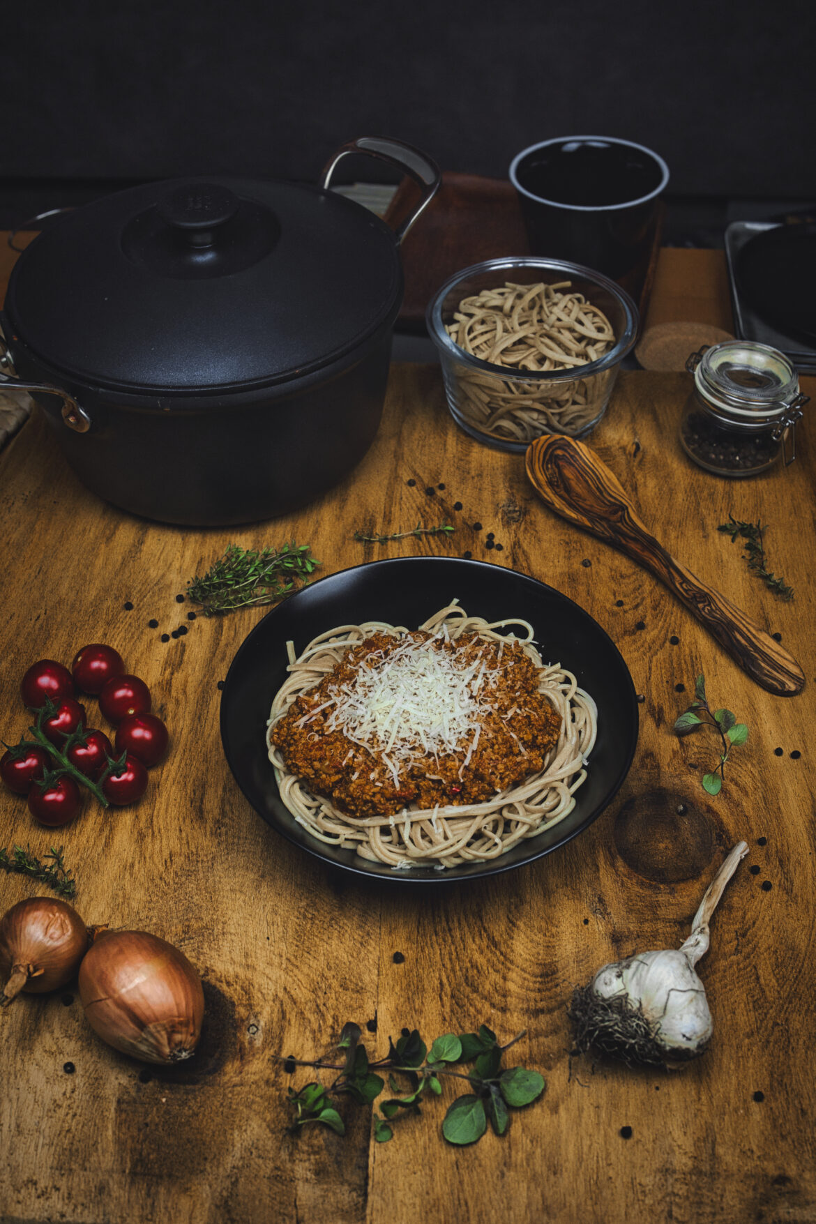 Vollkornspaghetti mit Sojabolognese
